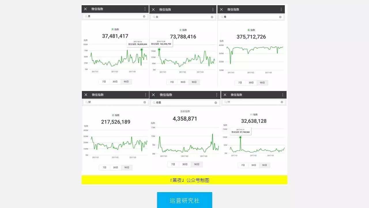 微信指數(shù)出來以后,對于微信公眾號運營人員來說是個以后每天都要使用的工具。那么如何提升微信指數(shù)呢?本文作者運營社@黑夜 通過微信關(guān)鍵詞指數(shù)采樣推理對微信指數(shù)進行全面拆解,拆解過程基本透視了這款產(chǎn)品的方方面面。