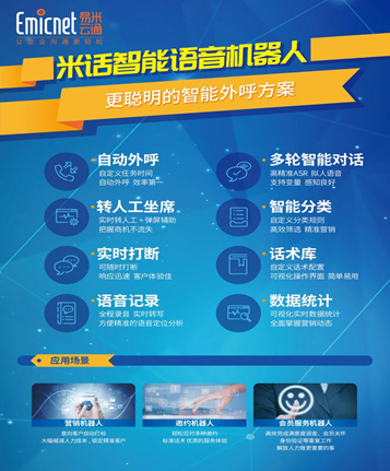 考慮到各行各業的電銷團隊都面臨解放人力和降低營銷成本的需求,截至目前,易米云通新近研發的米話·智能語音機器人已在全國26個省份、300多個城市與運營商合作開展正規業務,擁有固定號碼資源,線路安全、正規、穩定,落地號碼資源一點接入,全國可用。這不僅從根本上解決以往企業為電銷團隊所搭建的呼叫中心不得不面對的成本高、效率低、擴容難、風險大等痛點,而且通過云端部署技術,能夠實現快速搭建智能聯絡中心,這不僅能夠大幅度節約通信成本,更能快速全面提升電銷團隊的銷售效力。