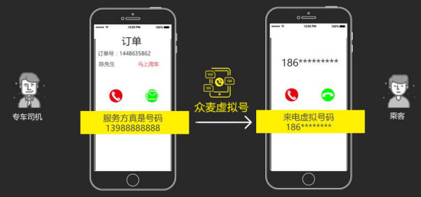 安全隱號(虛擬中間號)是APP平臺通信的游戲規(guī)則改變者。眾麥通信可為企業(yè)APP提供客戶手機號碼隱私服務(wù),如目前最為典型的滴滴打車,司機與乘客、乘客與司機之間的來顯號碼均為虛擬中間號,保障雙方私有手機號碼不泄露。以及百度外賣、瓜子二手車,等平臺上:外賣訂餐客戶下單,送餐員在APP上看不到訂餐人的私有電話,點擊撥號后訂餐人的來電顯示為一個虛擬號碼(我們?yōu)槟暾埖奶摂M手機號碼),從而送餐員和訂餐人都看不到雙方私有手機號碼,已達到雙方各自隱私保護的目的。