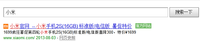 我們能獲得的很強烈的信號就是關于“官網”聲明的重要性,不管以什么方法,是圖標還是文字聲明,或者什么權威認證,表明網站的正牌身份,這將對排名展現有大大的優勢。很多品牌的關鍵詞被其他人做,尤其在淘寶客盛行的時候,很多產品的品牌被利用,因為這些品牌相關的詞搜索量不小,但競爭程度相對小,只要介入時機適合,能夠很快的搶占排名,作為品牌而言,為他們做嫁衣的損失是小,品牌形象遭到破壞是大。