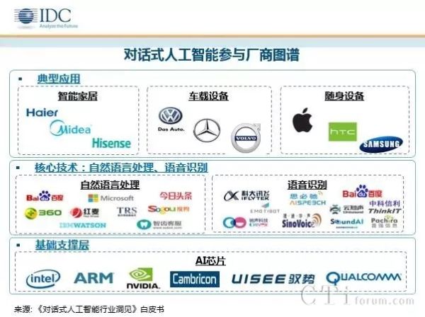 - 傳統廠商積極參與對話式人工智能的市場建設。如傳統家電廠商海爾、海信、美的等企業,已經與百度、科大訊飛,云知聲等語音技術廠商合作,逐漸將對話式人工智能技術應用于智能家居場景。