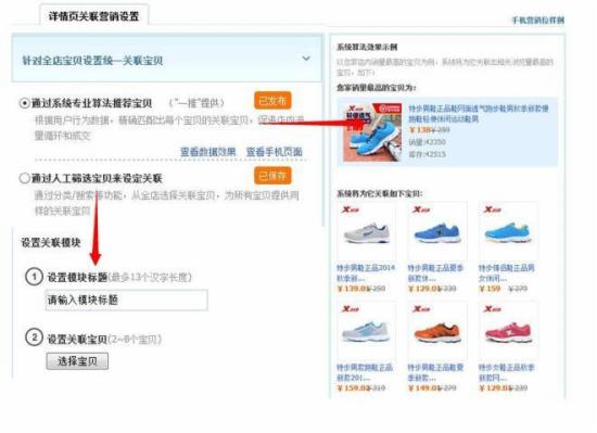 (2)系統推薦關聯:a、通過系統推薦——通過用戶行為數據,精選匹配每個寶貝的關聯寶貝;b、通過人工篩選。