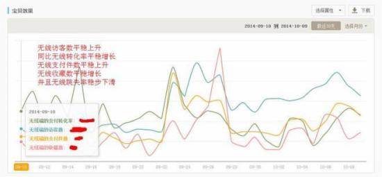 (2)無線端潛力款優先:需要通過一段時間的觀察,選擇無線端具有潛力的寶貝,可以從生意參謀中來看,也可以從量子中PC端與無線的訪客、成交、轉化率等來對比,選出合適的產品提前優化。