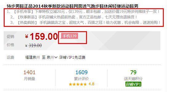 無線標題自動同步PC端標題,考驗的還是各位運營對關鍵詞的優化內功,下面主要講一個被隱藏的東東——副標題!如今官方取消PC端天貓詳情頁的的手機專享價,我們如何告訴買家手機端的活動,秘訣就在副標題里: