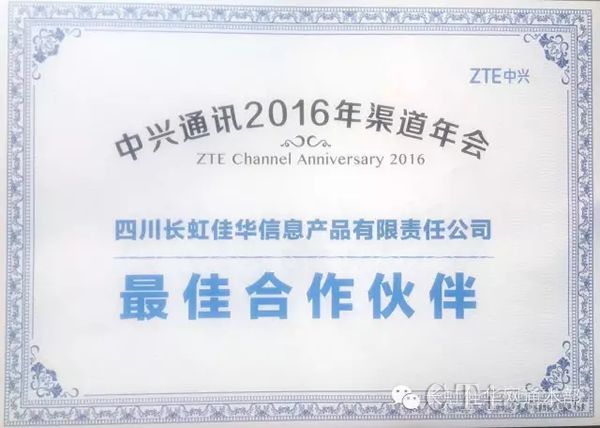 本次大會,長虹佳華再次榮獲中興通訊“最佳合作伙伴獎”殊榮。回顧2015,長虹佳華攜手中興取得了驕人業績。未來,我們將不斷完善,助力下游渠道伙伴共同成長,共建互聯網時代的合作新生態。