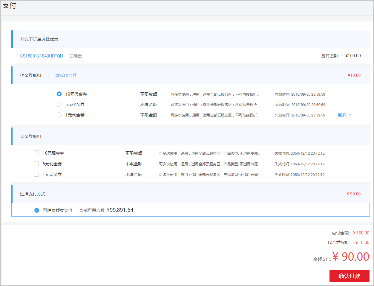 伙伴代金券同華為云代金券使用方法相同。支付訂單時,系統會自動獲取客戶已有的所有滿足條件的代金券。如果支付時沒有顯示可用的代金券,說明客戶當前沒有滿足限制條件的代金券。