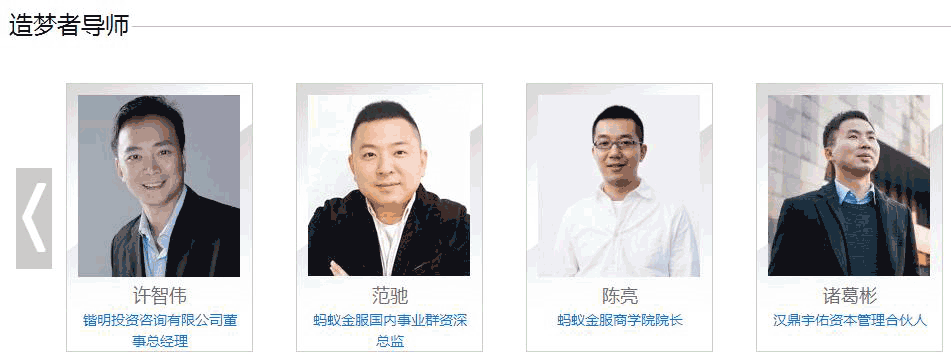 除了創業基金外,《一馬當先》也將引入強大的評審陣容:螞蟻金服集團首席戰略官陳龍、阿里云cto章文嵩、賽富投資首席合伙人閻焱、《創業家》董事長牛文文、知名財經作家吳曉波等數十位商界投資界大佬將輪番上陣,全面審視項目、犀利點評優劣、為“潛力股”背書、助力項目獲得融資。