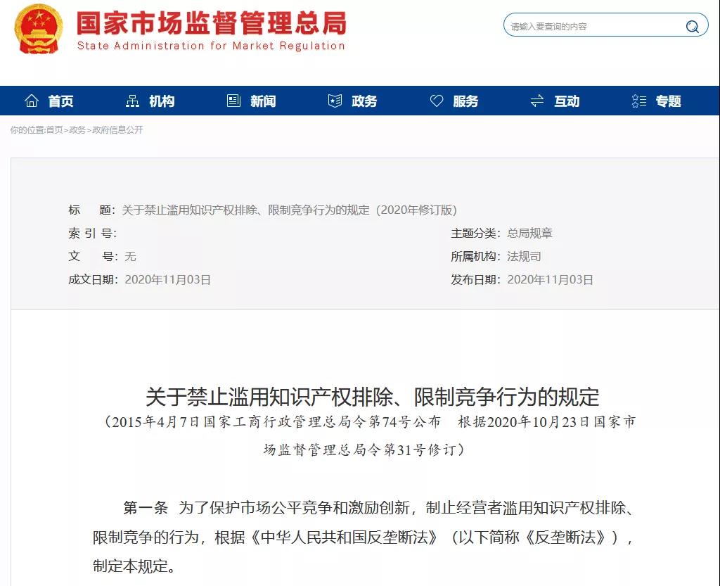 關于禁止濫用知識產權排除、限制競爭行為的規定