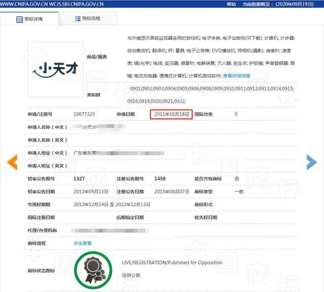 “小天才”商標(biāo)的歸屬還要等國家知識產(chǎn)權(quán)局重新裁定,但讀書郎公司所申請的“小天才”商標(biāo)又是什么情況呢?