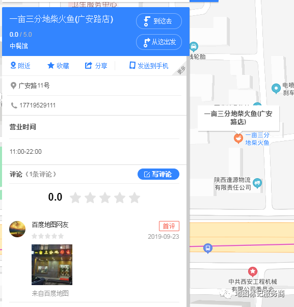 先搜索一下,如果沒有地址,點新增地址即可。新增只需要提供地圖選點,地址,類型,電話,照片,營業執照,就可以新增地址了。非常簡單,只要按照某號里的提示來填寫就可以了。說是5個工作日,實際上1天就能審核完成。